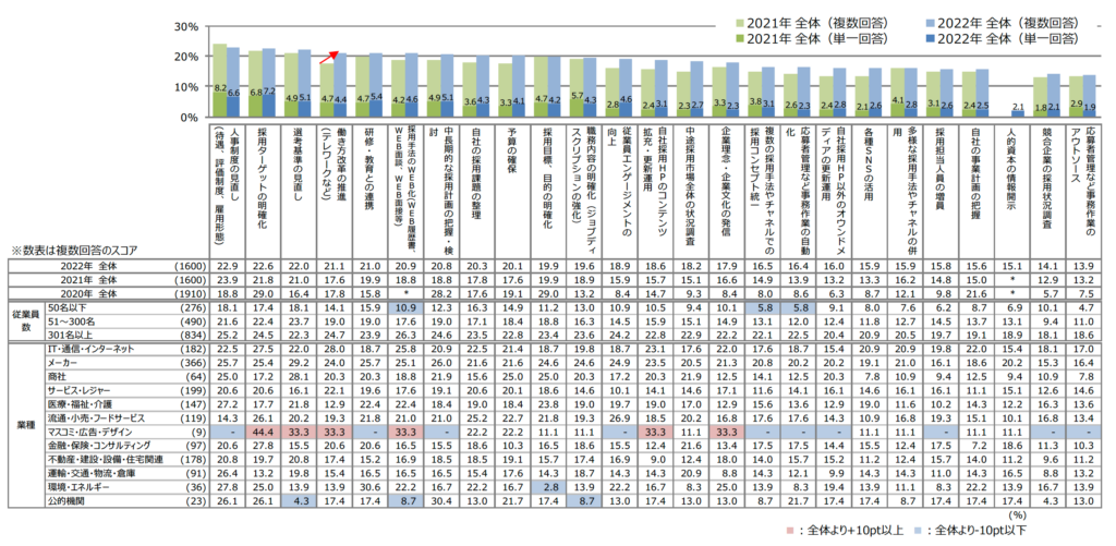 マイナビキャリアリサーチLabの中途採用実態調査2022年版に次に様な調査結果が出ていました。